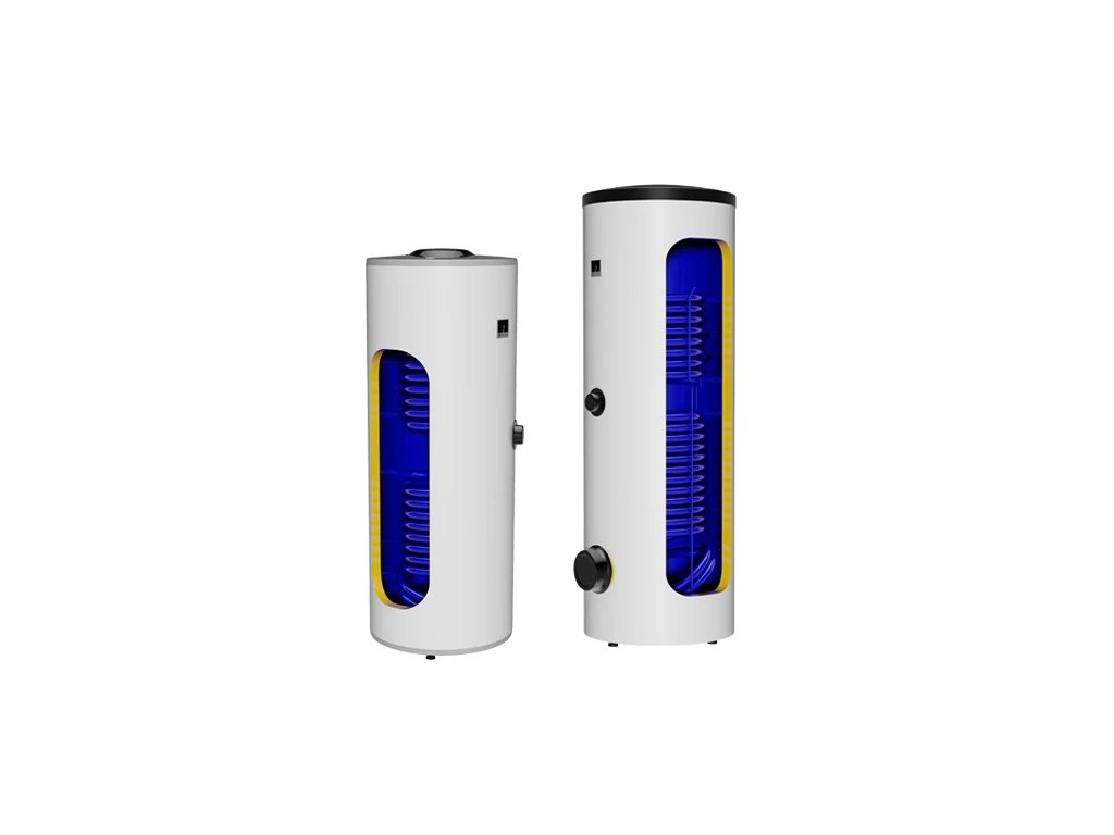 OKC NTRR/SOL - Stacionární ohřívač s dvěma spirálovými výměníky pro ohřev TUV topnou vodou ze dvou zdrojů. Dohřev lze provádět kotlem v horním výměníku např. kotlem i elektronickým tělesem TJ 6/4"