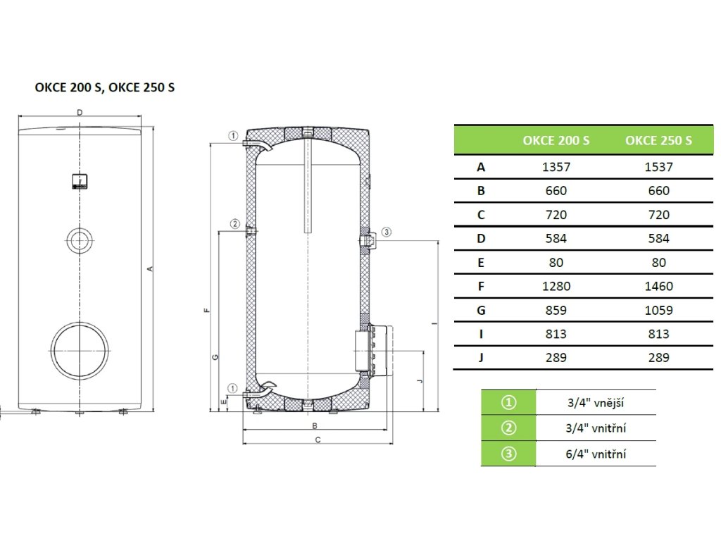 Typ zásobníku | OKCE 160 S | OKCE 200 S | OKCE 250 S | OKCE 300 S |